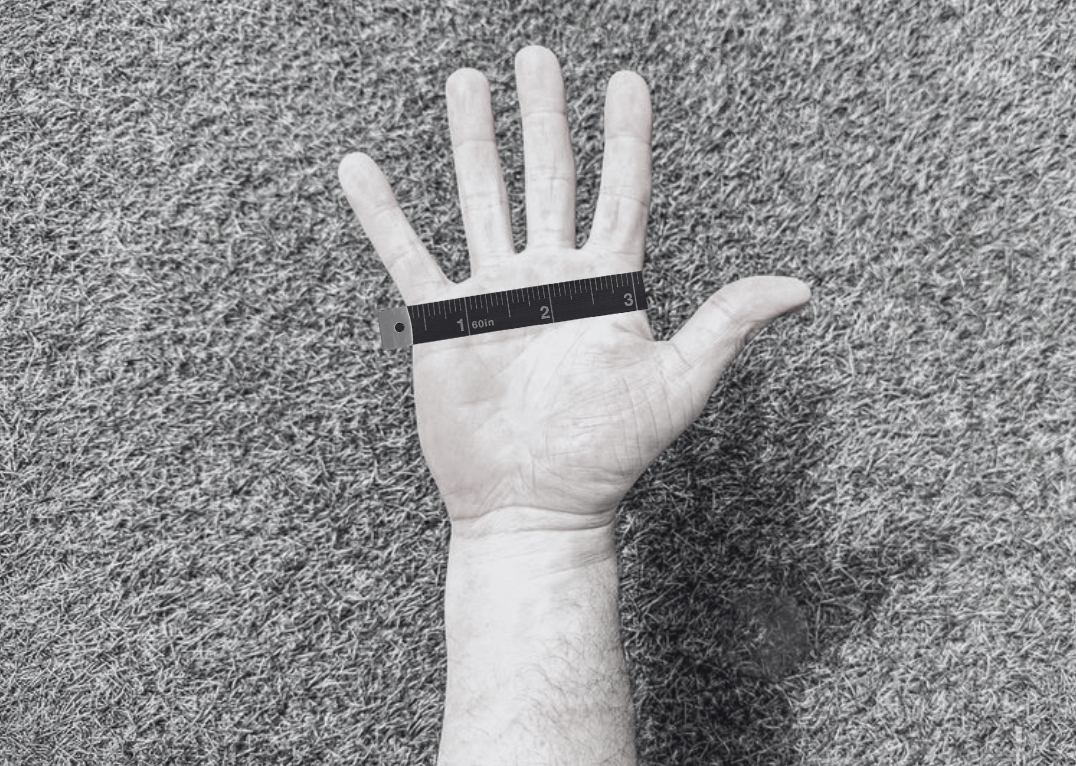 Measure the circumference of the part of your palm just below the knuckles, excluding the thumb.
